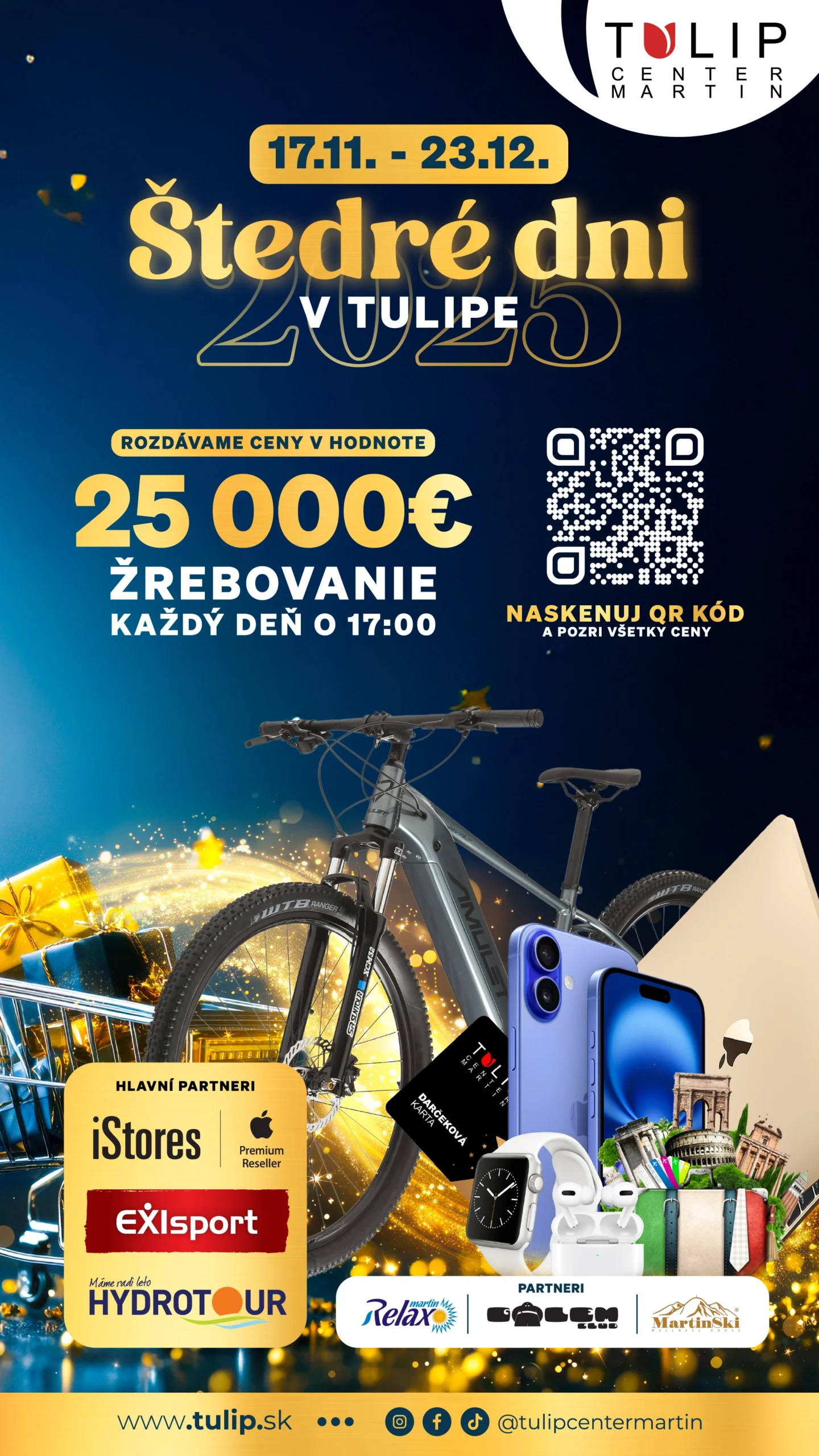 Podmienkou získania výhry je, osobná účasť výhercu maximálne do 15 minút po vyžrebovaní jeho mena priamo v OC Tulip Martin.